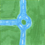 This work is inspired by a popular german board game, Carcassonne, based on tiles. "The game starts with a single terrain tile face up and 71 others shuffled face down for the players to draw from. On each turn a player draws a new terrain tile and places it adjacent to tiles that are already face up. The new tile must be placed in a way that extends features on the tiles it abuts: roads must connect to roads, fields to fields, and cities to cities.” An afternoon I met with some friends to play that game, but instead of playing the actual game, we re-drew all the tiles of the game. We followed the structure of the original tiles, but everybody was free to choose in which way to make the drawing and what to actually draw on it. Every time that the work is shown, the landscape changes its geography. |